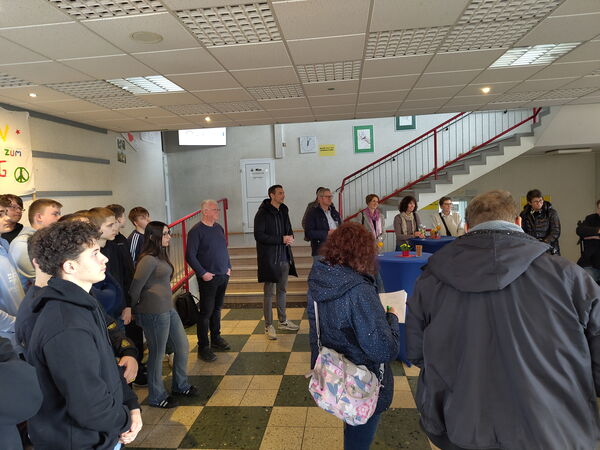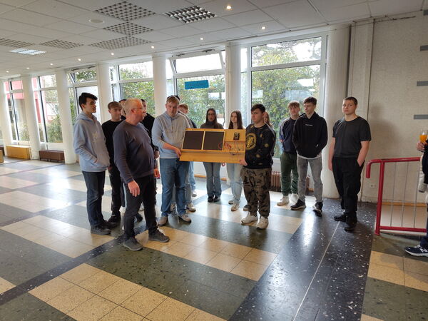 Im Eingangsbereich der Schule, unter dem Monitor, auf dem die Stromerträge des Augenblicks, aber auch der letzten Stunden und Tage abzulesen sind, freute man sich. Seit ihrer Gründung im November 2023 hat die Energiegenossenschaft-Stimberg eG, wie sie offiziell heißt, 225 Mitglieder gewinnen können und mehr als 500 Anteile (pro Anteil 500 €), also einen Kapitalstock von 250000 € aufbauen können. Aus diesen Mitteln sind die PV-Anlage auf der Realschule und auf der neuen Feuerwache umgesetzt worden. Auch die Anlage auf der Feuerwache ist fertig, wartet aber noch auf die Inbetriebnahme.